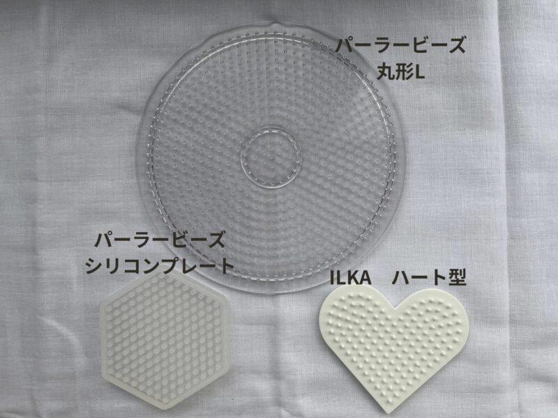 - パーラービーズ: 透明のプラ製プレートで形も様々。シリコンプレートがある。