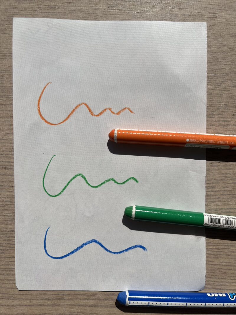 書き味はクレヨンっぽく、芯がやわらかいのが伝わってきます。