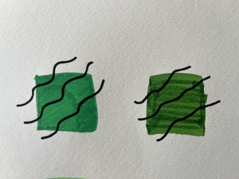 緑で四角を塗りつぶし、その上から黒で線を書きました。