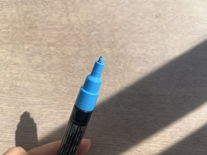 上のプロッキーはポスカに比べるとやや薄く見えます。
